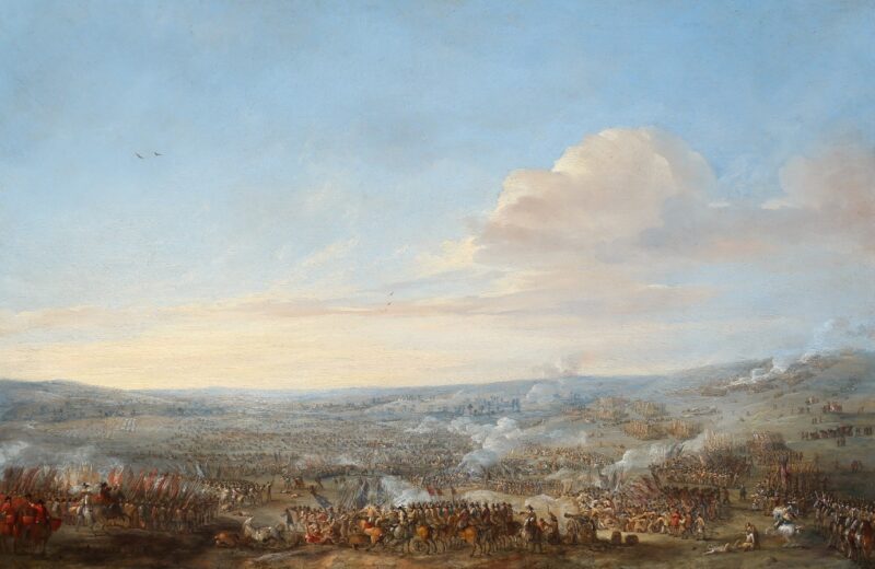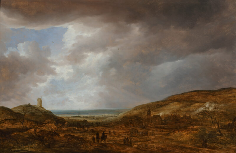 Panoramic landscape with a fortified town, Jacob de Villeers